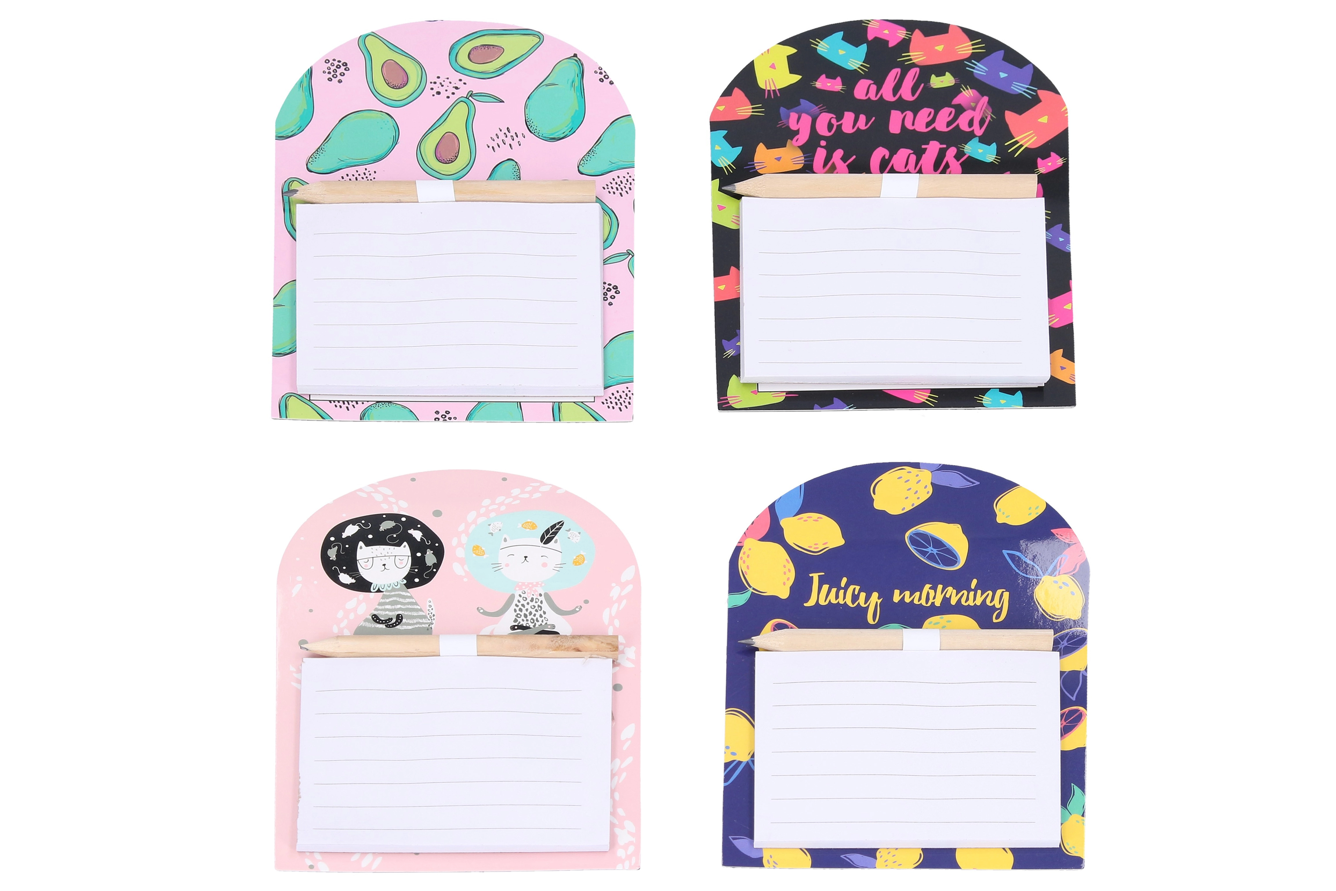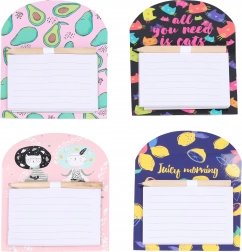 A praktikus tartónak köszönhetően a ceruza mindig kéznél van, az erős mágnes pedig biztonságosan tartja az egész szettet. Vonzó minták vegyes összeállításából választhat (virágok, gyümölcsök, állatok és más motívumok), amelyek remekül illenek a belső térhez.