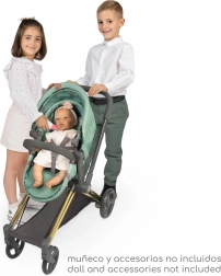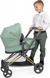 Ez a stílusos babakocsi modern mentazöld anyagát elegáns részletek és arany díszítések egészítik ki. Átgondolt kialakításának köszönhetően könnyedén válthatsz a mély mózeskosár és a sportverzió között. A magasabb tolókar (73 cm) a kisiskolás kor előtti gyerekek számára is kényelmes kezelést biztosít.