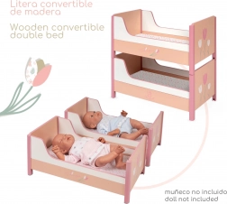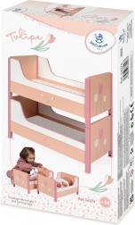 Az elegáns, 2 az 1-ben Tulipe fa babágy finom pasztell árnyalataival és virágmintájával nyűgöz le. Okos megoldásának köszönhetően könnyen átalakítható emeletes ágyról két különálló ággyá. Tartozék 2 matrac, minőségi kivitel és könnyű kezelhetőség – ideális kiegészítő a 48 cm-es babák szobájába.