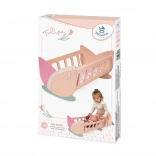 A bölcső mindkét vége tulipán formájú, amely a meleg lazacpasztellekkel együtt gyengéd, modern megjelenést ad. A bölcső stabil, tartós, és a minőségi anyagoknak köszönhetően könnyen tisztítható. Tökéletes választás mindennapos játékhoz és mint dizájnelem a gyerekszobába.