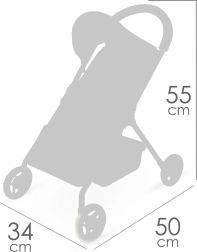 A babakocsi hárompontos övvel biztosítja a baba rögzítését, praktikus tárolóhellyel rendelkezik az apróságok számára, valamint tartós fém/műanyag/textil anyagkombinációból készül a hosszú élettartamért. A kollekció színeiben készült díszdobozos csomagolás remek ajándék.