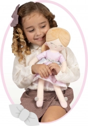 A Sophie plüss baba 36 cm-es méretben gyengéd kis társ a legkisebbeknek, 12 hónapos kortól. Könnyű kialakítása és üreges szálas, puha töltete biztonságos játékot jelent kiságyba és útra egyaránt. A finom, fényes plüss tapintása kellemes, és a kézi mosás 30 °C-on lehetőségének köszönhetően könnyen tisztán tartható.