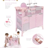 Fedezze fel a bájos, rózsaszín árnyalatú, szürke és fehér részletekkel díszített SOPHIE babágyat. Ez az összecsukható modell kényelmes játékra, gyors össze- és elpakolásra készült, és az átgondolt tárolómegoldásoknak köszönhetően segít rendet tartani a gyerekszobában.