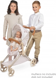 A világos bézs és fehér visszafogott kombinációja, finom mintákkal, masnikkal és hímzett méhecskékkel időtálló, modern babakocsik által inspirált megjelenést kölcsönöz a VERONA modellnek. A 73 cm-es tolókar magasságnak és a mély és sport változat kombinációjának köszönhetően ideális óvodás kislányoknak, akik értékelik a valósághű, részletgazdag kidolgozást és a könnyű kezelhetőséget.