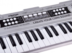 Fedezd fel a zenélés örömét a könnyű és áttekinthető, ezüst kivitelű mini billentyűzettel. A 37 billentyűnek, az áttekinthető panelnek és a beépített hangszóróknak köszönhetően ideális első lépésekhez a dallamok és ritmusok világában. A gazdag funkciók támogatják a hallási készségeket, a koordinációt és a kreativitást.