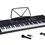 Univerzális, 61 billentyűs keyboard elegáns fekete kivitelben, kiváló választás kezdőknek és haladóknak egyaránt. 200 hangszín, 200 kísérritmus, 70 demódal és világító billentyűk segítik a könnyebb tanulást. Az áttekinthető LCD kijelző, a Record/Play, One Key/Follow/Guide funkciók, valamint a USB bemenet és a csomagban található mikrofon remek társsá teszik gyakorláshoz, szórakozáshoz és otthoni fellépésekhez.