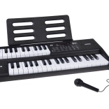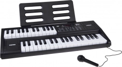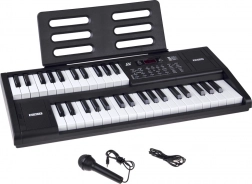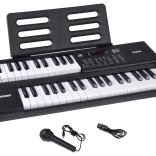 A csomag tartalma: mikrofon és kottatartó. A billentyűzet kompakt, beépített hangszórókkal és egyszerű kezeléssel – ideális otthoni zenéléshez, kíséret gyakorlásához és első saját dalokhoz.