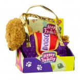 A játék puha, kellemes tapintású és gyermekbarát anyagból készült. A színes, díszes fülekkel ellátott táska és a selymes kutyus olyan szettet alkotnak, amely örömet szerez minden gyermeknek, és támogatja a kreatív játékot és a gondoskodást.