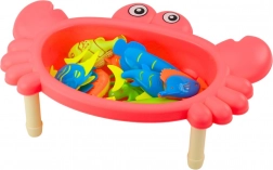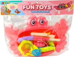 horgász asztali szett rák – rózsaszín, 10 hal, horgászbot és háló