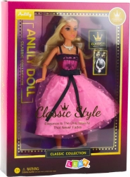 Fedezze fel az ANLILY baba báját, amely rózsaszín–fekete báli ruhában ragyog. A hosszú szőke haj hívogat a fésülésre és frizurakészítésre, míg a teljesen mozgatható végtagok dinamikus pózolást és életteli játékot biztosítanak.
