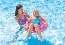Az INTEX felfújható úszógumi remek társ a nyári vízi mókához. A 0,20 mm vastag, minőségi vinylnek köszönhetően kopásálló és bírja a mindennapos használatot. Az áttetsző, neon kivitel első pillantásra magával ragad, és növeli a láthatóságot a vízben.