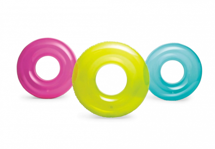 Élvezd a nyarat teljes gőzzel az INTEX 76 cm átmérőjű felfújható úszógumijával! Az áttetsző, neon színű dizájn és a tartós vinyl anyag biztosítja a magas élettartamot és a biztonságos vízi szórakozást 8 éves kortól. Könnyű, kis helyen elfér, ideális tengerhez, medencébe vagy tóhoz.