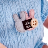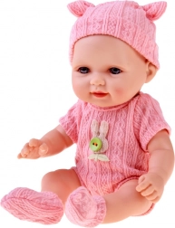 A babának mozgatható végtagjai és feje vannak, így ültethető vagy altatáshoz lefektethető. A szettet puha, kötött, tépőzáras rugdalózó alkotja, amely könnyen fel- és levehető – a sapkával és cipőcskékkel együtt fejleszti a finommotorikát és az önállóságot. A ruhák két színváltozatban érhetők el: rózsaszín és világoskék.