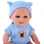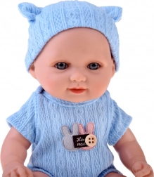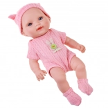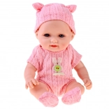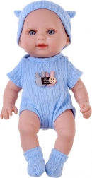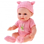 A könnyű, 26 cm magas baba ideális első játékbaba a legkisebbeknek. Mozgatható karokkal, lábakkal és fejjel rendelkezik, így ültethető és fektethető. Valósághű arc hosszú szempillákkal és finom részletekkel, amely örömet szerez minden gyermeknek. A szett része a puha, levehető, tépőzáras rugdalózó, valamint a sapi és cipőcskék két színben – rózsaszín vagy kék.