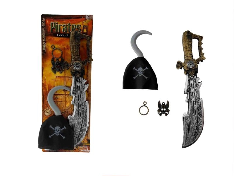 Hajózz úgy, mint egy igazi kapitány! Ez a kalózkészlet tartalmaz egy szablyát a párbajokhoz, egy kapitányi jelvényt a rang jelzésére és egy kampót kéz helyett az autentikus kalózmegjelenéshez. Tökéletes kis felfedezőknek, farsangra és tematikus bulikra.