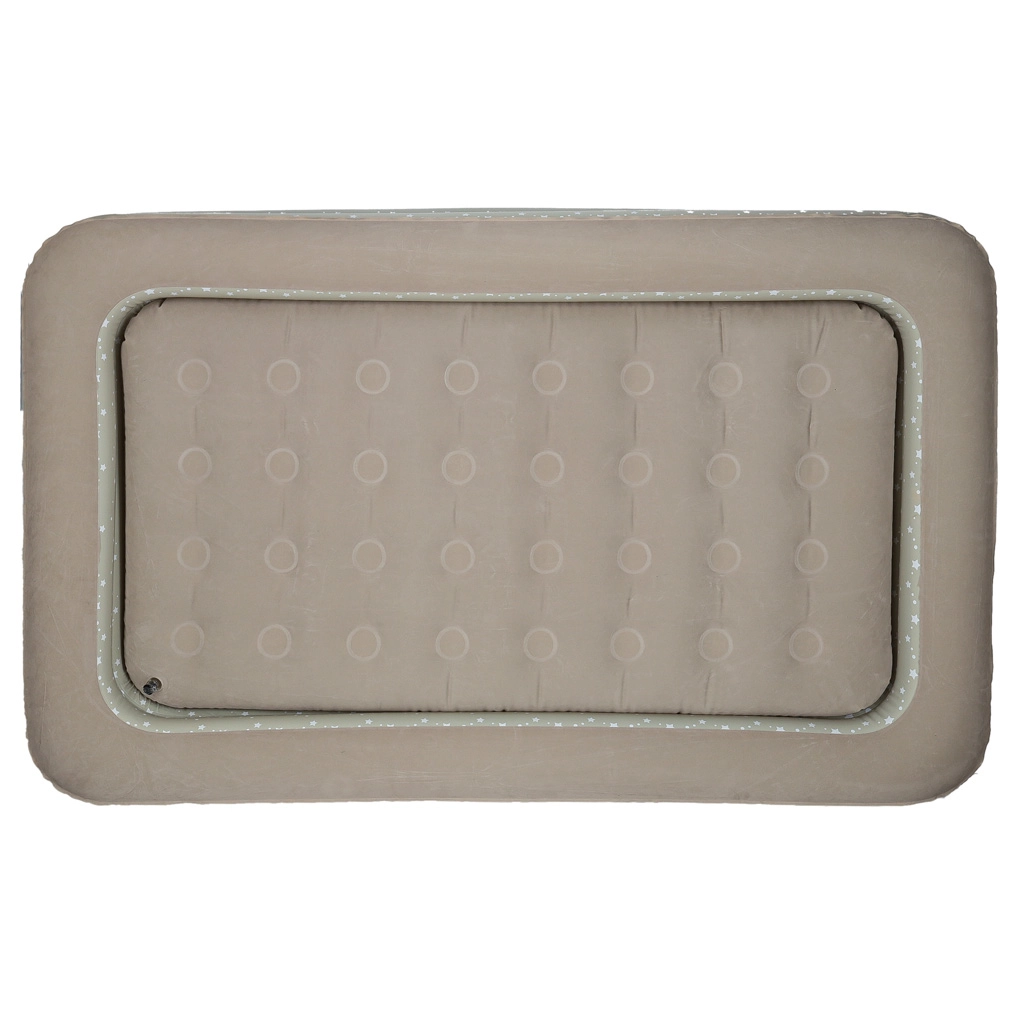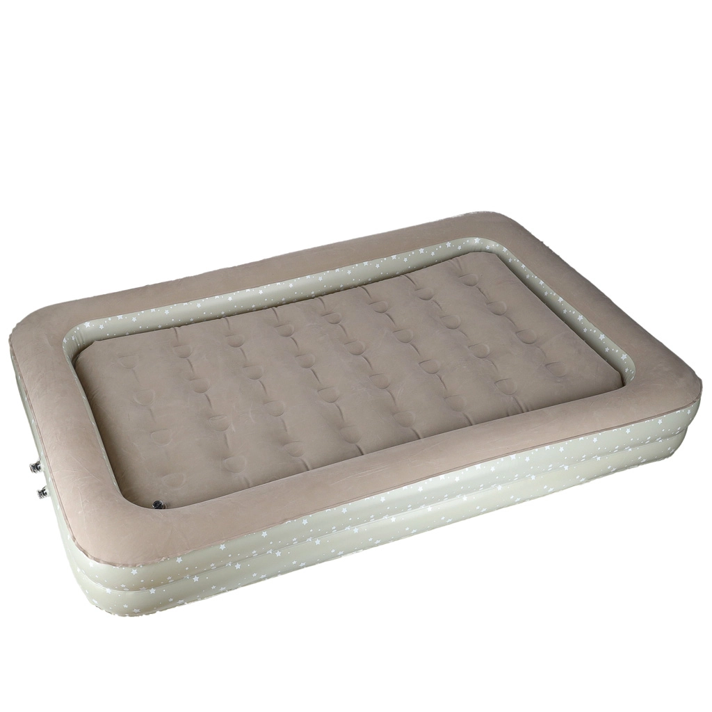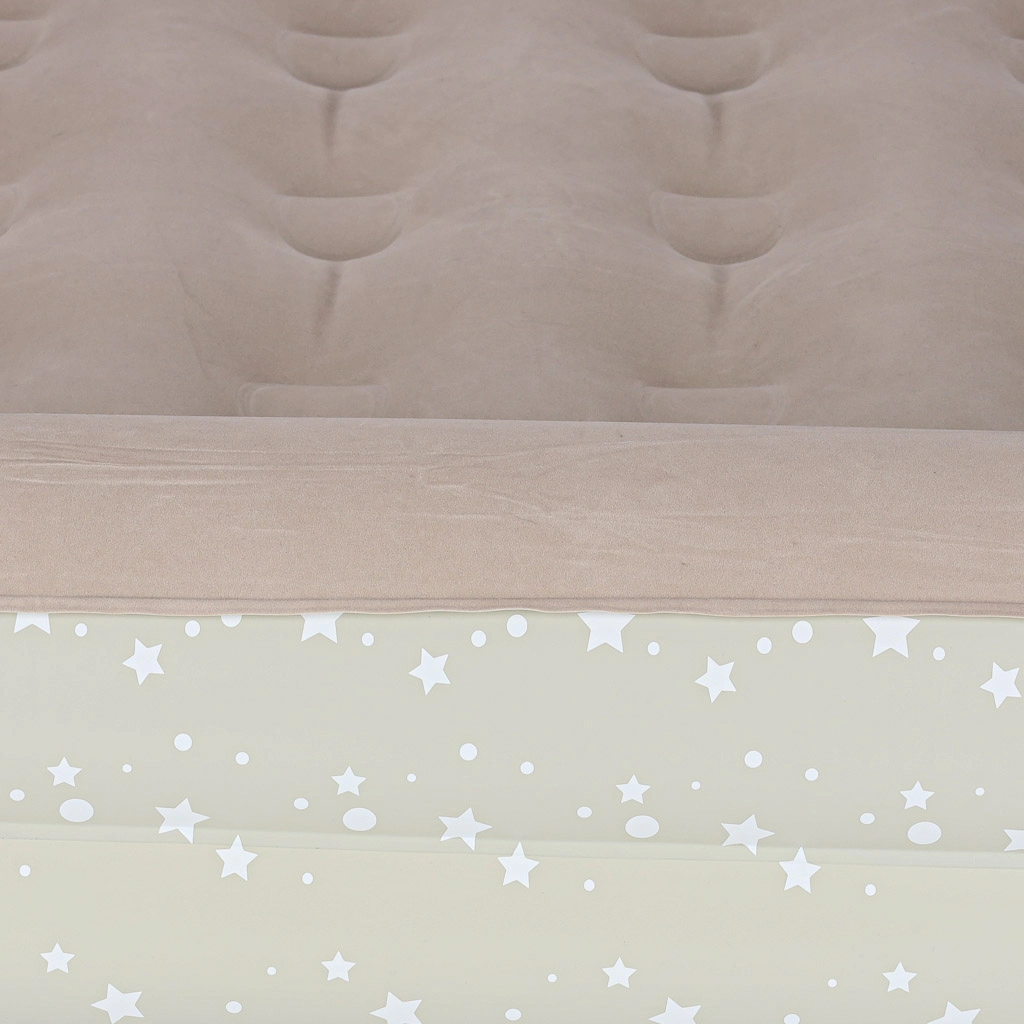 Teremtsen a gyerekeknek kényelmes és biztonságos környezetet bárhol – ez a kétrészes felfújható gyerekágy megemelt peremű külső keretet és kivehető belső matracot kombinál. A puha, flokkolt (velúr) felület kellemes tapintású, és megakadályozza az ágynemű csúszkálását. Az elegáns csillagmintás dizájn játékos megjelenést kölcsönöz az ágynak.