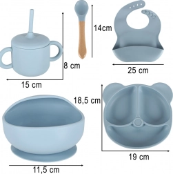 Ez a komplett gyerek szilikon étkészlet kényelmes és biztonságos etetésre, valamint az önálló evés tanulására készült. A tapadókorongos tálka és a rekeszes tányér stabilan a helyén marad az asztalon vagy az etetőszék tálcáján, így jelentősen csökkenti az étkezés közbeni rendetlenséget. A puha, tartós és csúszásmentes szilikon kellemes tapintású és könnyen tisztítható.