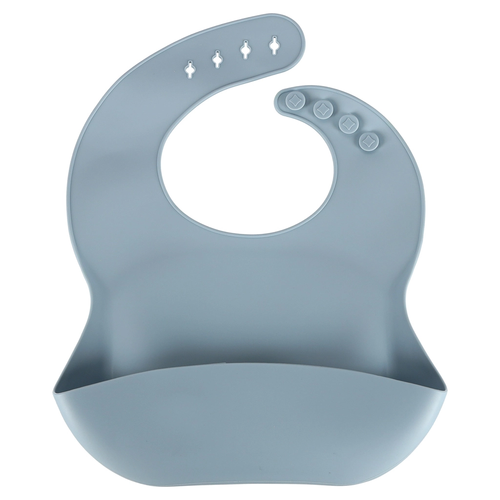 Puha szilikon előke többszintű záródással, amely együtt nő a gyerekkel. A mély zseb felfogja a morzsákat és a folyadékokat, így a ruha tiszta marad, a takarítás pedig gyors.