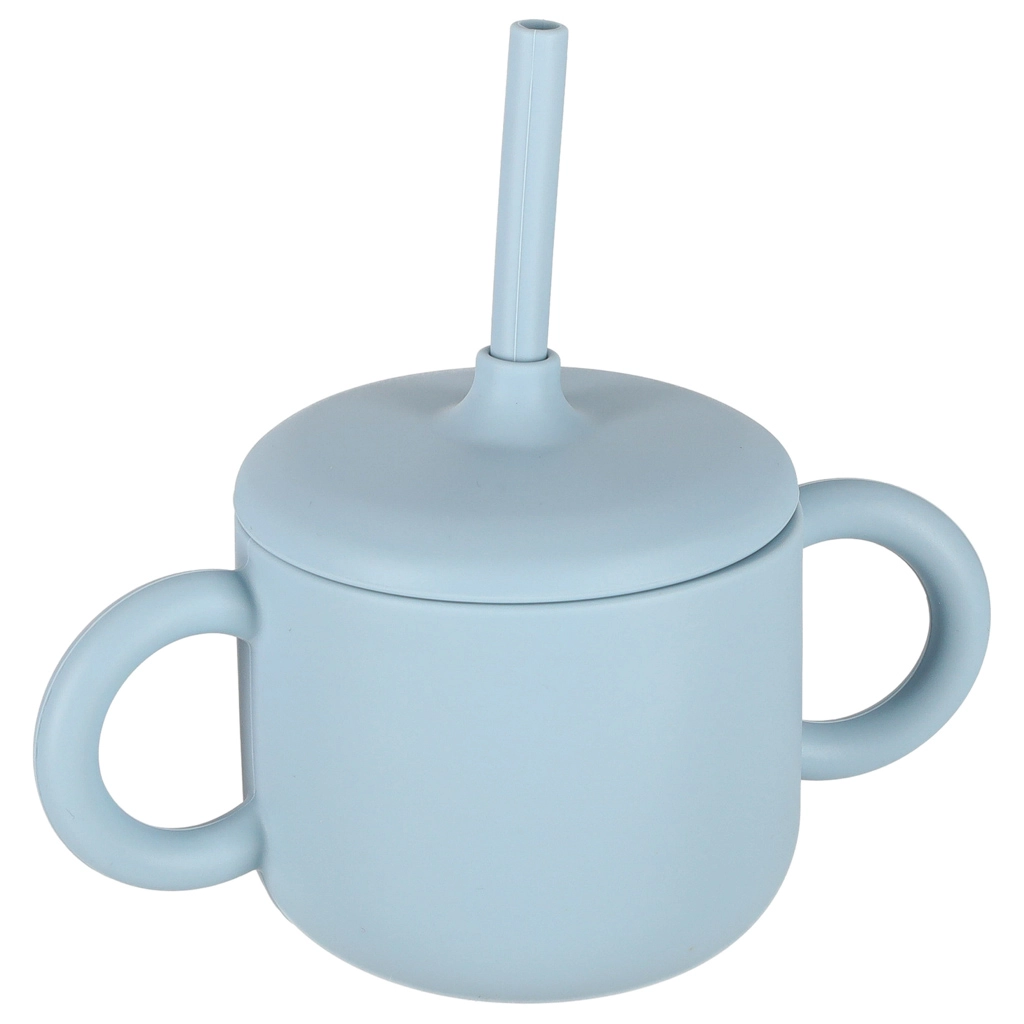 Kétfülű szilikon bögre fedéllel és beépített szívószállal, amely megkönnyíti az átállást a cumisüvegről. A puha felület nem csúszik, és kíméletes a kis kezekhez.