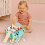 Az állatok a hajó oldalán lévő, pontosan kialakított nyílásokba illeszthetők. A gyerekek így természetes és szórakoztató módon gyakorolják a formák felismerését, a türelmet és a finommotorikát.