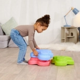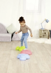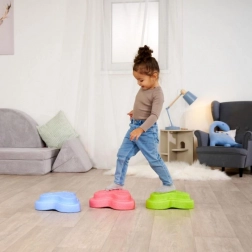 A HEPPY egyensúlyozó kövek szettje bármely szobát szórakoztató szenzoros ösvénnyé varázsol. Az öt darab élénk színben (piros, kék, zöld, narancs, sárga) motiválja a gyerekeket ugrálásra, lépegetésre és építésre, miközben természetes módon erősítik a stabilitást, a koordinációt és a mozgásbiztonságot.