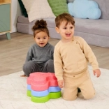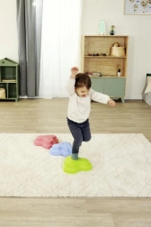 Minden kő akár 120 kg-ot elbír, csúszásmentes felületű, és 12 hónapos kortól idősebb gyerekeknek is alkalmas. Könnyen tisztítható, nyál- és izzadságálló.