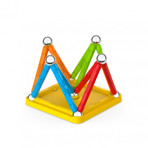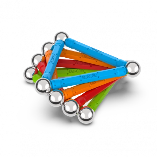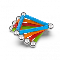A masszív műanyag pálcikák és fényes fémgolyók a mágneseknek köszönhetően megbízhatóan illeszkednek egymáshoz. A szerkezet stabil, és könnyen átalakítható.