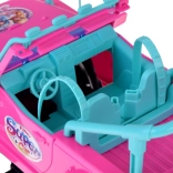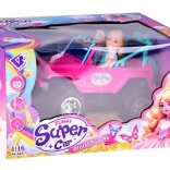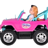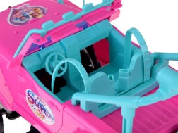 Indulj kalandos szafarira a rózsaszín terepjáróval babáknak. A nyitott kabin türkiz ülésekkel és állítható övekkel biztonságosan rögzíti a mellékelt figurákat. A nagy gumis kerekek és a lökhárító off-road stílust adnak az autónak, miközben a első LED lámpák valósághű hatást keltenek vezetés közben.