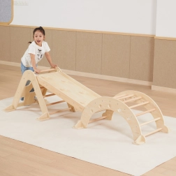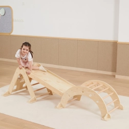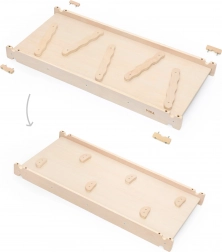 Ez a kétoldalas lap sokoldalú mozgásra és biztonságos beltéri játékra készült. A sima felület ideális csúszdázáshoz vagy stabil járópallóként, míg a másik oldal kapaszkodóival a gyerekeket mászásra és új kihívások leküzdésére ösztönzi. A minőségi bükkfa és rétegelt lemez szilárdságot, stabilitást és hosszú élettartamot biztosít.