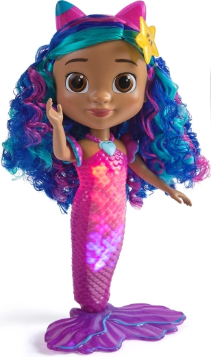 Fedezd fel a varázslatot a Gabi, a sellőlány babával, amelyet a Gabi varázsházikója film inspirált. Ez a nagy, körülbelül 35 cm-es baba világító farokeffekteket, akár 14 hangot és mondatot kínál a szívalakú nyaklánc megnyomására, és vízálló, így kádban és medencénél is játszható. A színpompás hajnak, a stílusos kiegészítőknek és a csomagban található elemeknek köszönhetően azonnal készen áll a varázslatos kalandokra.