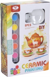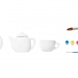 - Teljes csomag: kancsó fedővel, 2 csésze, 2 csészealj, 6 festék, ecset