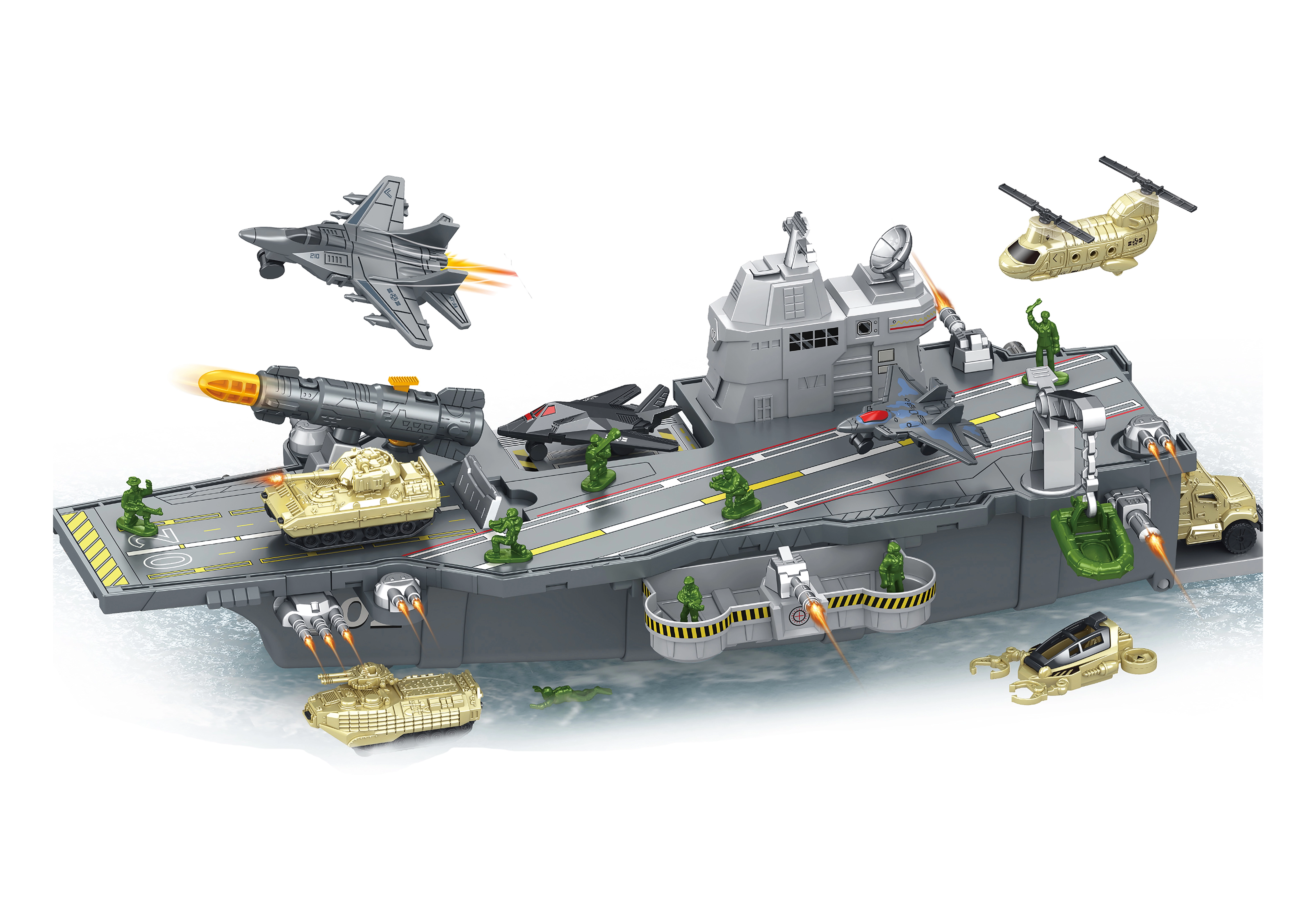 - Repülőgép-hordozó, járművek és katonai figurák
