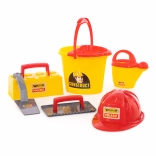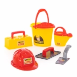 Ez a szórakoztató Wader építőkészlet azoknak a gyerekeknek készült, akik szívesen fedezik fel a konstrukció világát. A készlet része egy színes sárga vödör, piros sisak, öntözőkanna és más eszközök, melyek órákon át tartó kreativitást és szórakozást biztosítanak.