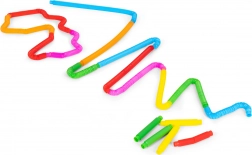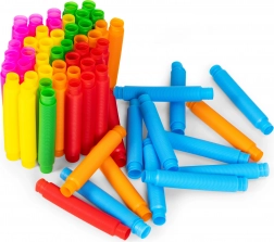 Ezzel a 60 darabos, színes pop cső készlettel a gyerekek könnyedén készítenek köröket, spirálokat, láncokat és hosszú alagutakat. A csövecskék könnyen összekapcsolhatók, nyújthatók és hajlíthatók számos konfigurációba, ami támogatja a kreativitást, a logikus gondolkodást és a szem–kéz koordinációt.