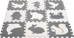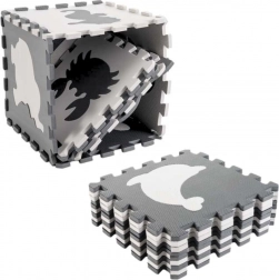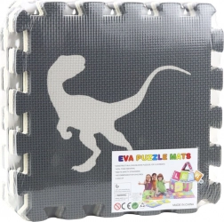 EVA habszivacs padló puzzle dinoszaurusz motívummal, kontrasztos szürke és bézs, 9 darab