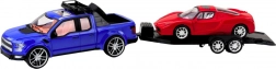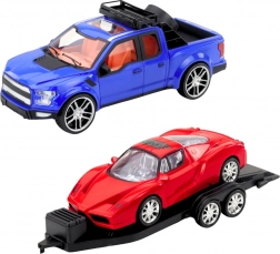 Ez a sokoldalú készlet egy kék pickupot kombinál két tengelyes utánfutóval és egy elegáns piros sportautóval. A gyerekek a járművet rámpa segítségével felrakhatják, elszállíthatják és lerakhatják, versenyjeleneteket alkothatnak, miközben fejlődik a képzelőerejük, finommotorikájuk és koordinációjuk.