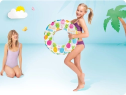 Élvezd a nyarat a medencénél vagy a tengernél az univerzális INTEX úszógumival. A 61 cm átmérő kényelmesen illik körülbelül 6–10 éves gyerekeknek, és biztonságot, valamint örömteli élményt nyújt minden vízben töltött pillanat során. A tartós 0,18 mm-es PVC hosszú élettartamot és könnyű karbantartást biztosít.