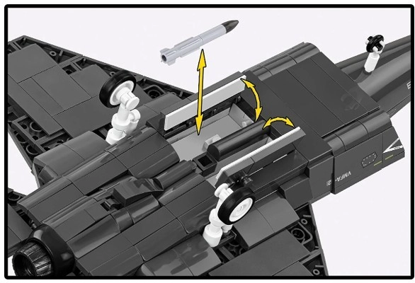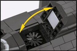 - Nyitható kabin, mozgatható kormányfelületek, nyitható fegyvertér, gördülő gumis kerekek
