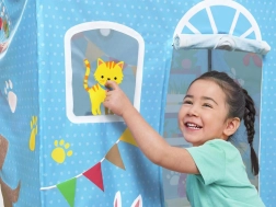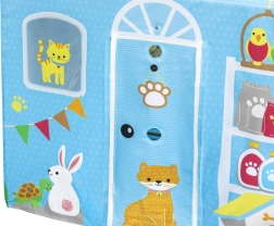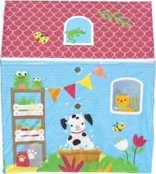 Vidám színek és állatos minták játékos jelleget kölcsönöznek a házikónak, ami bármilyen gyermeket csábít a szórakozásra és felfedezésre.