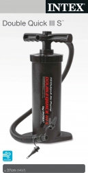 Kézi pumpa DOUBLE QUICK III S Intex. Kézi pumpa tömlővel medencék, matracok, napozóágyak, labdák és gyerekjátékok gyors felfújásához és leeresztéséhez. A kettős működés lehetővé teszi a pumpálást felfelé és lefelé irányban is. A felfújáshoz és leeresztéshez elegendő megváltoztatni az áramló levegő irányát. A pumpa nagy légáramlással rendelkezik a gyorsabb felfújás érdekében.