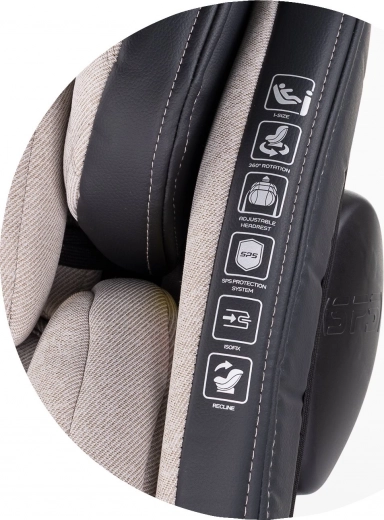 SPS oldalvédelmi rendszer, 5 pontos öv, 11 pozíciós fejtámla, 4-féle ülésdőlés és 3D párna a nyomás csökkentésére – biztonság és komfort a babától az iskolás korig.