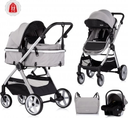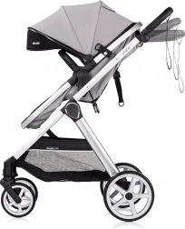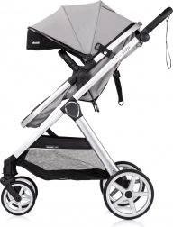 A CHIPOLINO Vista Cloud Grey praktikus 2 az 1-ben babakocsi, amely a mózeskosarat és a sportülést egy megoldásban egyesíti. Az okos kialakításnak köszönhetően az ülőegység könnyen átalakítható mózeskosárrá újszülötteknek, majd vissza, és menetirányba vagy azzal szembe is felhelyezhető. A könnyű, eloxált hatású alumínium váz és a minden keréken rugózás kényelmes és stabil haladást biztosít városban és parkban egyaránt.