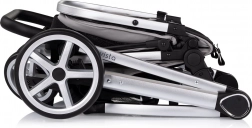 A gyermek kényelméről állítható háttámla (3 pozíció), párnázott 5 pontos biztonsági öv és levehető, ökobőr biztonsági karfa gondoskodik. A szülők értékelni fogják a magasságában állítható tolókart csuklópánttal a biztonság érdekében, a nagy tároló kosarat, valamint a kupolát ablaknyílással és napellenzővel. A hátsó kerekeken összekapcsolt fék található, a reteszelés pedig extra stabilitást ad az ülőegységnek és a mózeskosárnak. A babakocsi megfelel az EN1888-1 és EN1888-2 európai szabványoknak.