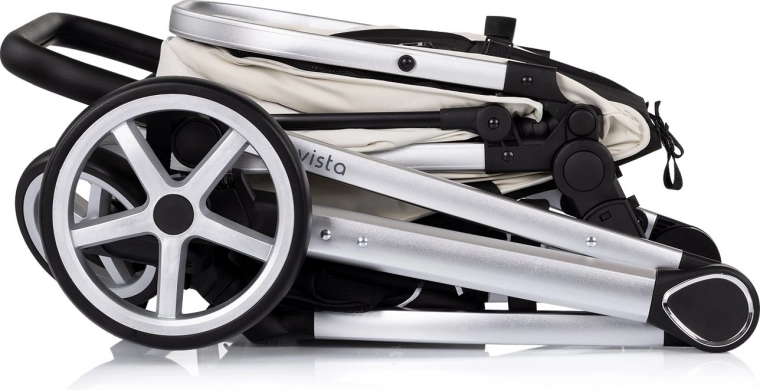 A könnyű, eloxált hatású alumínium váz és a rugózott kerekek sima haladást nyújtanak városban és parkban egyaránt. A biztonságról puha párnázású 5 pontos öv és levehető, ökobőrrel bevont karfa gondoskodik. A praktikus kupola levehető napellenzővel és szellőző ablakkal minden időben védelmet ad, míg a nagy kosár és a mellékelt pelenkázótáska mindennek helyet biztosít.