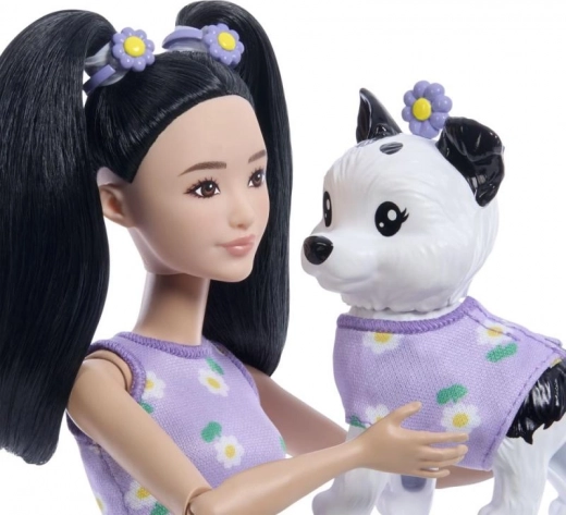 Ez a bájos BARBIE készlet kiskutyával a divat és a fantázia tökéletes kombinációját nyújtja. A baba levendulaszínű, virágmintás szettben, kis kedvence pedig passzoló mellényben kész minden napra szóló kalandokra. A gazdag kiegészítőválasztéknak köszönhetően a gyerekek új történeteket alkothatnak és fejleszthetik képzelőerejüket.