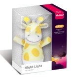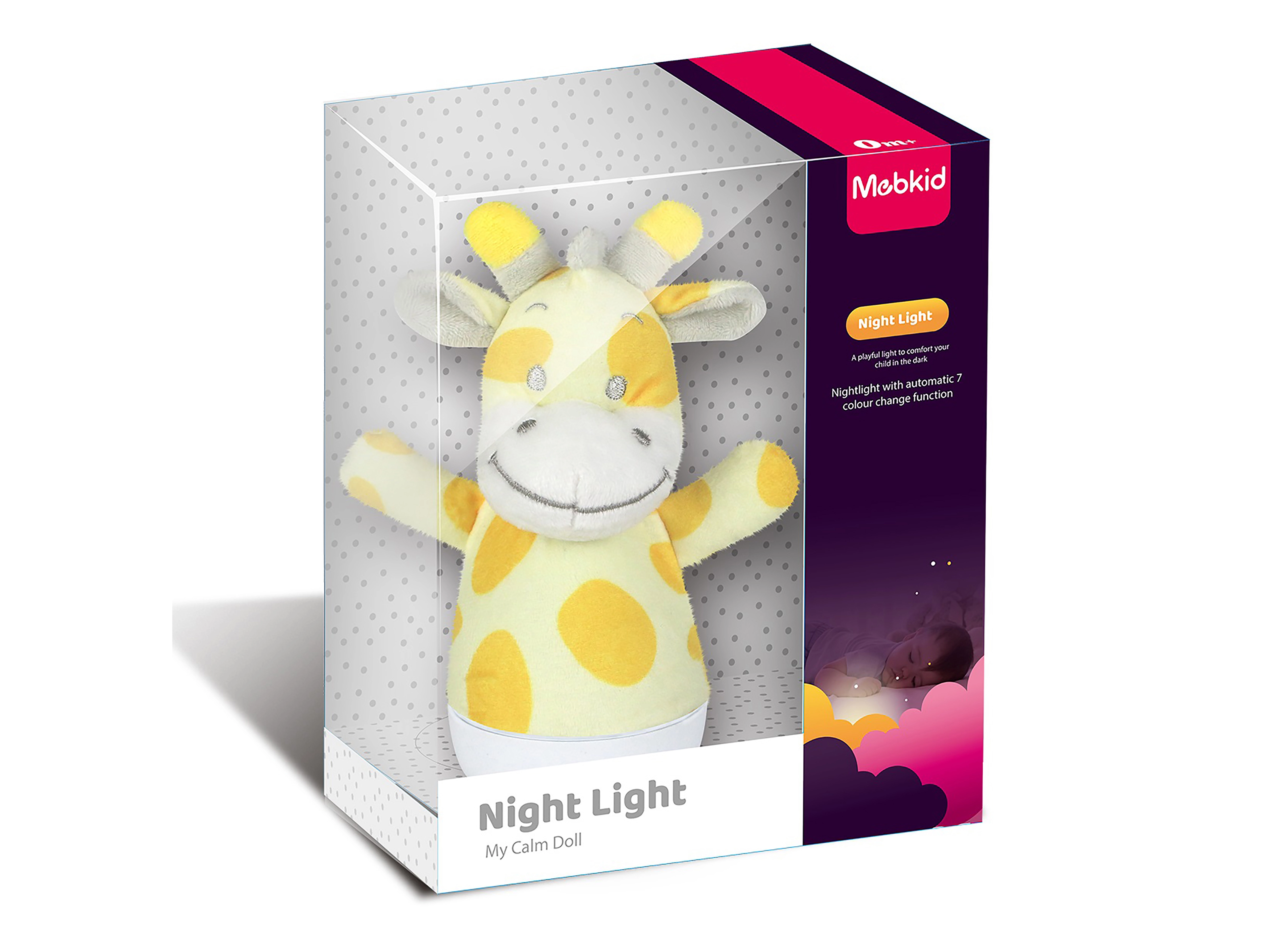 Cuki plüss zsiráf éjjeli lámpa és alvótárs, amely nyugodt elalvást biztosít a gyerekeknek. Automatikus 7 színű váltakozó fényt kínál, könnyű kapcsolóval történő vezérlést az alsó részen, valamint kompakt méretet az éjjeliszekrényre vagy a gyerekszobába.