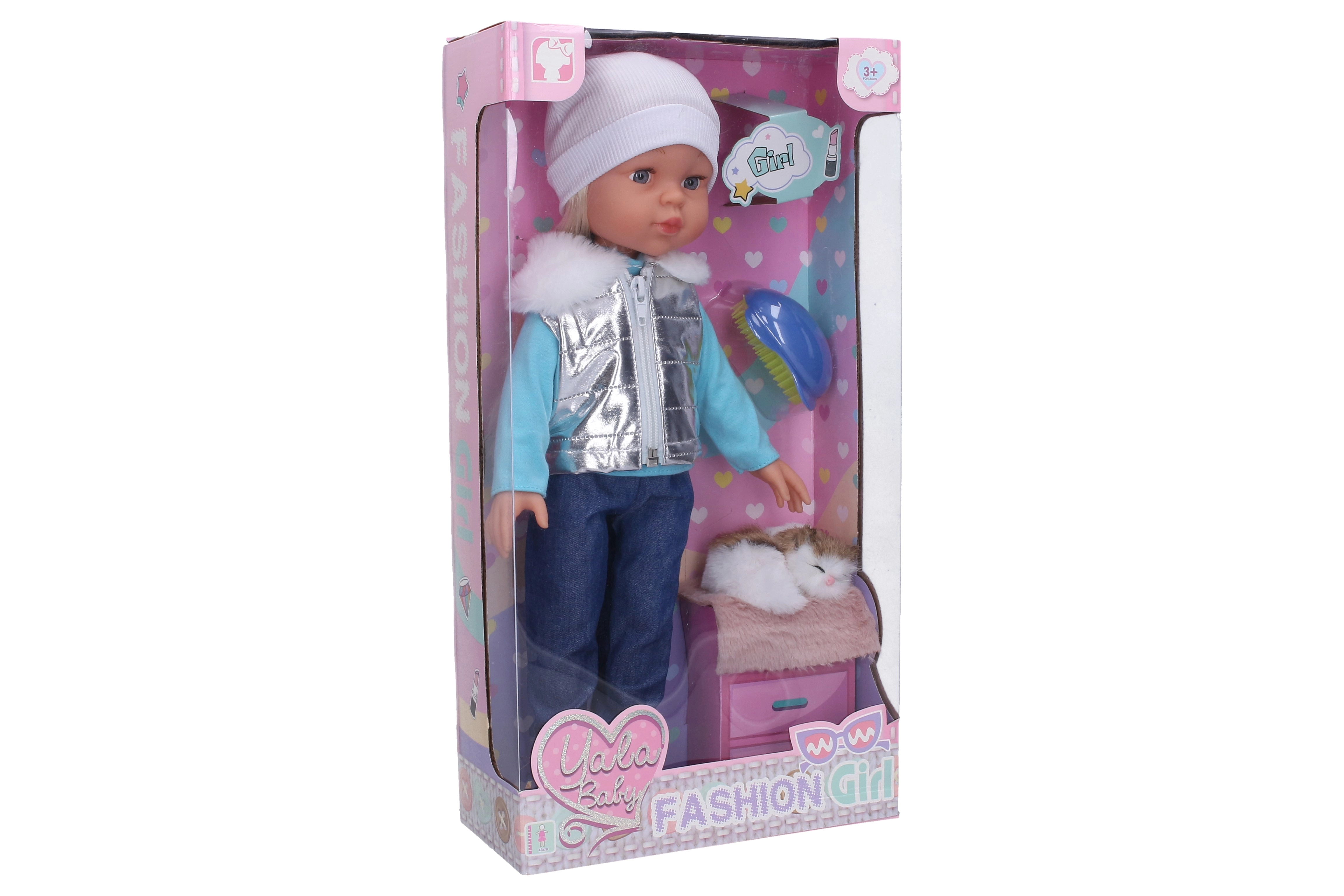 Ez a baba ideális a mindennapi játékhoz és a fantázia fejlesztéséhez. A 43 cm-es méretnek köszönhetően kényelmesen tartható és könnyű vele bánni. A csomagban egy aranyos cica és egy hajkefe is található a baba hajának fésüléséhez.