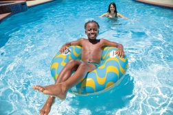 A karika egészségre ártalmatlan, 0,23 mm vastag vinilből készül, szigorú biztonsági előírásoknak felel meg, és 9 éves kortól ajánlott. A legfeljebb 60 kg teherbírásnak és a magas stabilitásnak köszönhetően remek társ játékhoz és pihenéshez medencében vagy a tengernél.