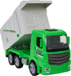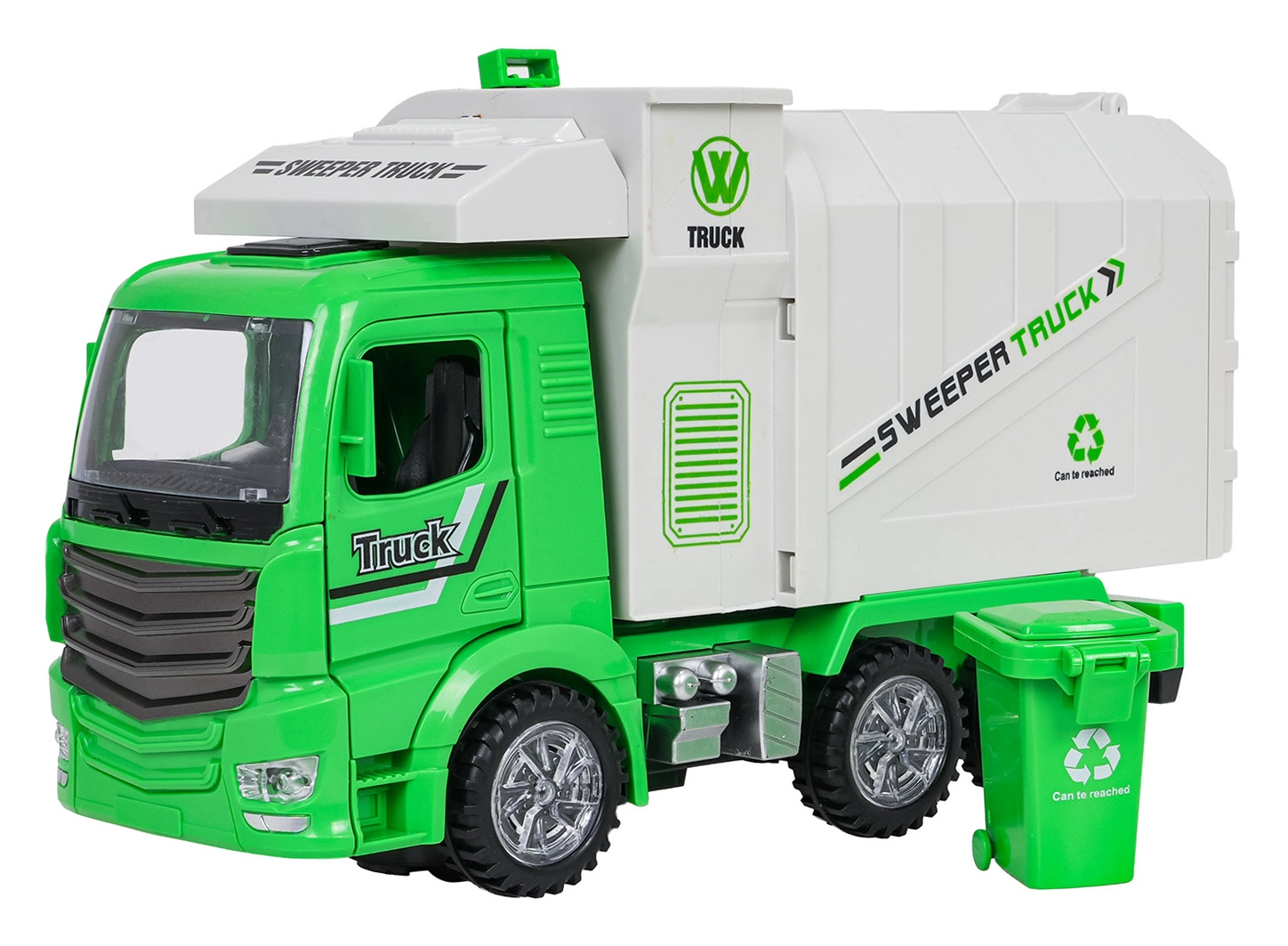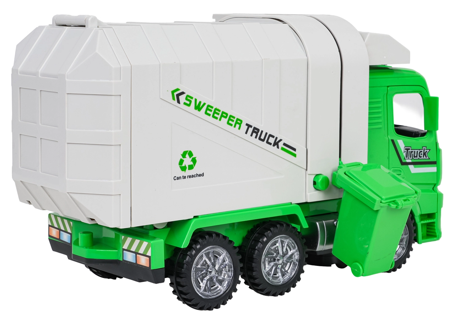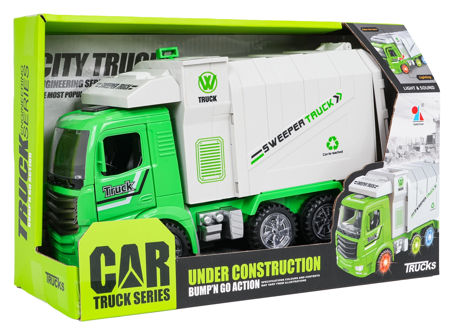 Fedezd fel a szórakoztató, 3 éves kortól ajánlott kukásautót fény- és hangeffektekkel. A világító kerekeknek, a első fényszóróknak, a menet-, duda- és fékhangoknak, valamint a emelhető konténernek köszönhetően élethű játékélményt nyújt. A csomag tartalmaz egy levehető kukát is, amely közvetlenül a betöltőnyílásba borítható.