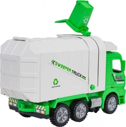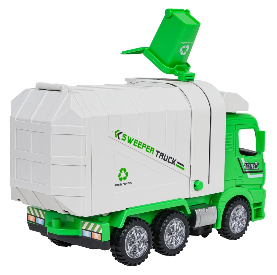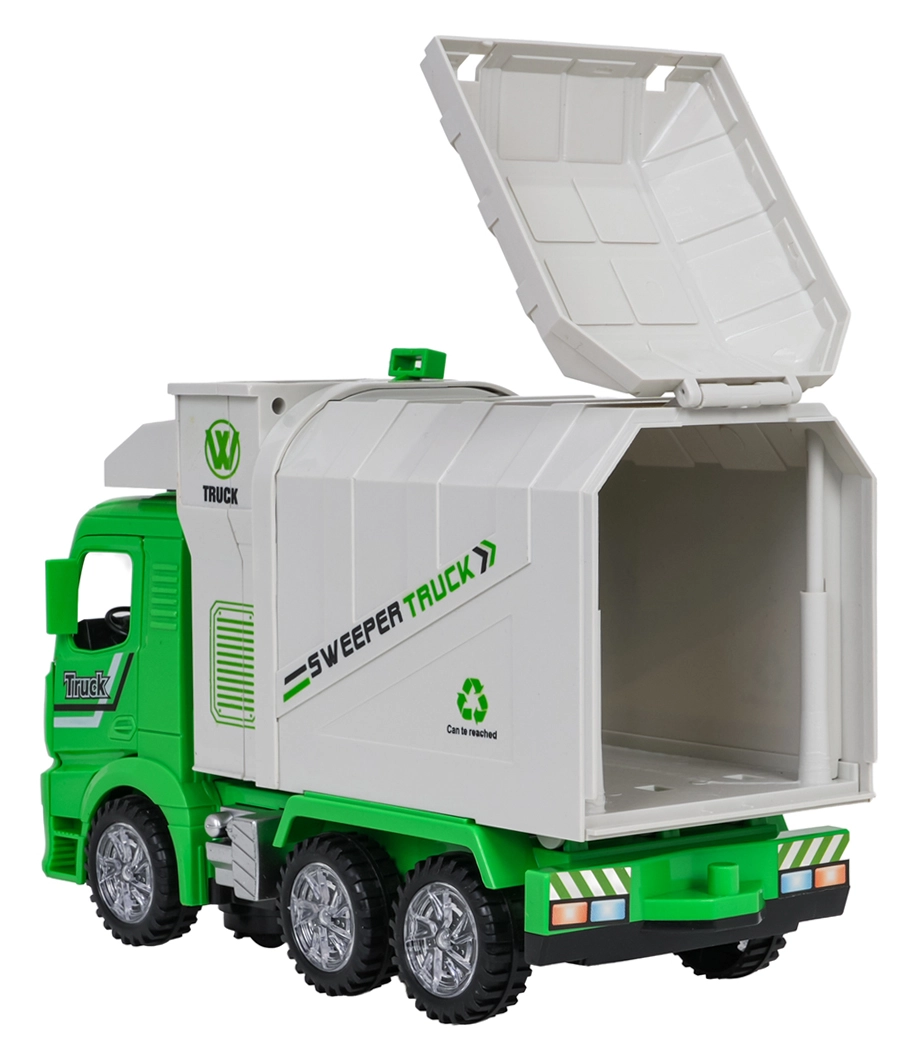 Az interaktív kukásautó minőségi műanyagból készül, és örömet szerez minden kis technikarajongónak. Az autó az alul elhelyezett forgó keréknek köszönhetően minden irányba képes haladni, menet közben világítanak az első lámpák és a kerekek. A vezetőfülke ajtajai nyithatók, a konténer emelhető és leengedhető, a hátsó fedél pedig felnyitható.
